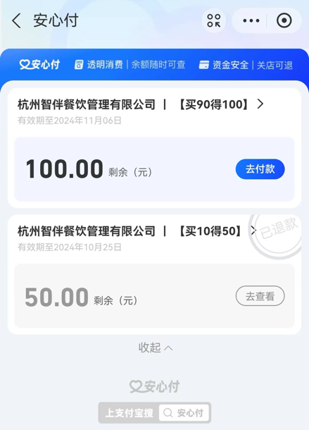 杭州智伴餐饮管理有限公司吴辉强介绍称,智伴是“安心付”的首批入驻企业,在杭州开设了9家社区食堂,主要服务社区居民及老年人,充值设定的上限是不超过500元,一般重阳节都会做充值优惠活动,“有了‘安心付’的保障,老年人更愿意来消费。”