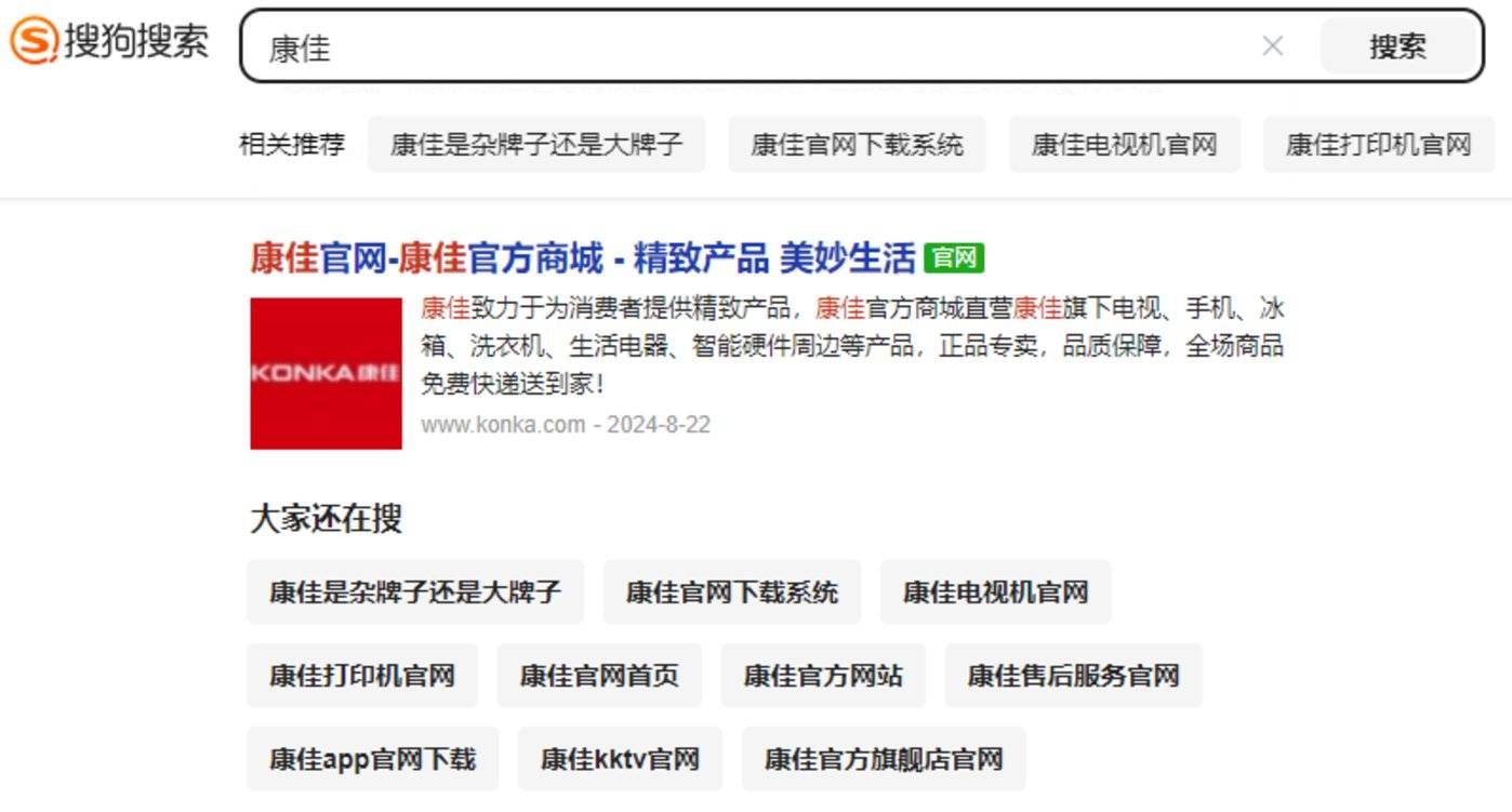 偶然发现,在搜狗上检索“康佳”二字,相关推荐的词条第一个竟然是“康佳是杂牌子还是大牌子”,这其实很大程度上表明了康佳如今的品牌渗透度不足的问题。作为一直以技术创新为驱动的老国货品牌,这种市场认知度很明显是不应该的。