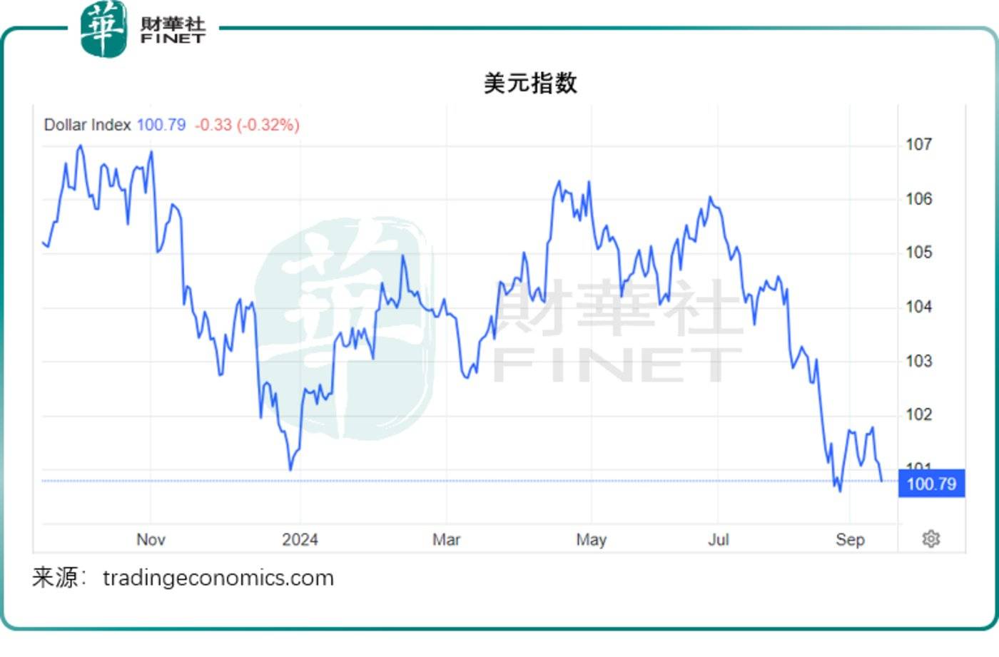 这一戏剧性的转变,令全球的资产价格也出现波动。美元指数持续下降,现报100.79。