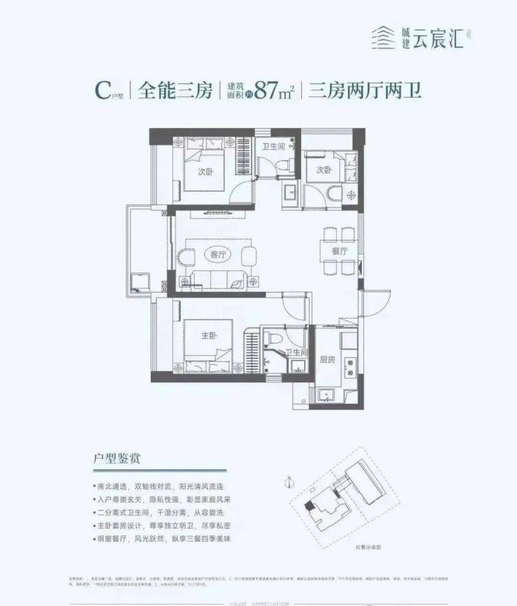 城建云宸汇位于深圳市龙岗区坂田街道坂澜大道和环城路交汇处,由深圳市城建集团开发建设,是集住宅、商业、办公和宿舍为一体的综合体项目,推售140套住宅房源,面积65-113㎡的2-4房。