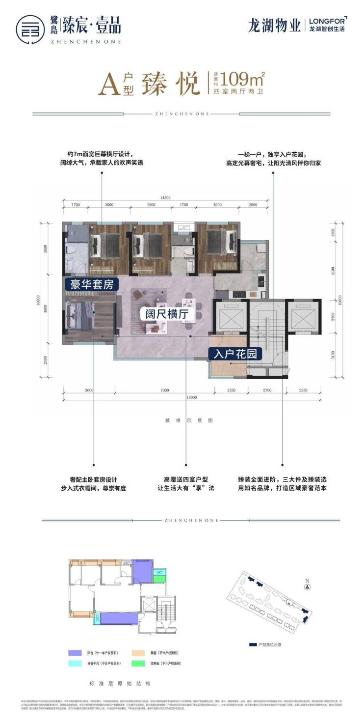 绿地率:30% 物业公司:龙湖物业 物业费:2.5元/m 产品:14-17层洋房.上下叠拼 面积:109/120/143/175/192/337
