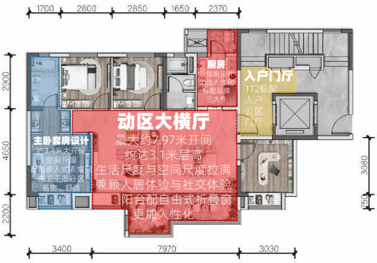 整盘均打造纯板式“洋房”社区,相比塔楼,纯板式结构私密性更佳,且采光通风效果绝佳,而1梯2户、2梯2户的布局,保证了居住的纯粹舒适性。约115-133㎡三到四房,均采用近无廊柱结构的空间设计,可以让不同的生活阶段和家庭结构的变化,对空间需求变化,空间布局和功能有更多改造的可能性