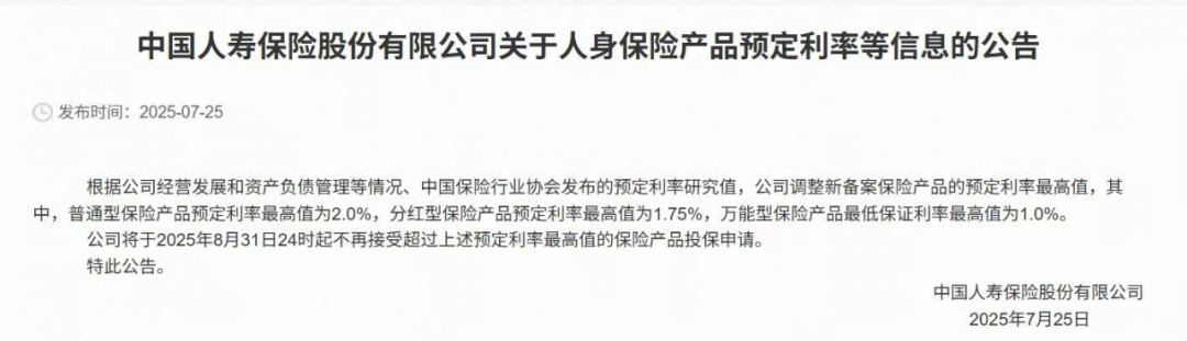重磅!人身险预定利率9月1日调降 中国人寿等火速公告!