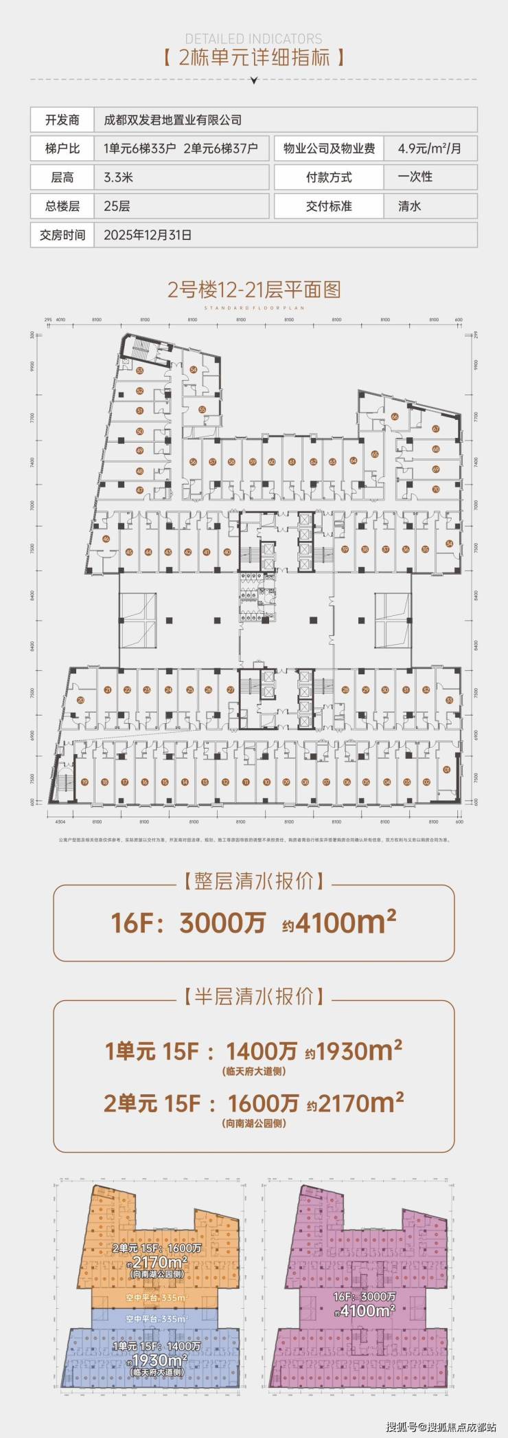 大宗交易:15层半层1400-1600万/1930-2170㎡;16层整层3000万/4100㎡