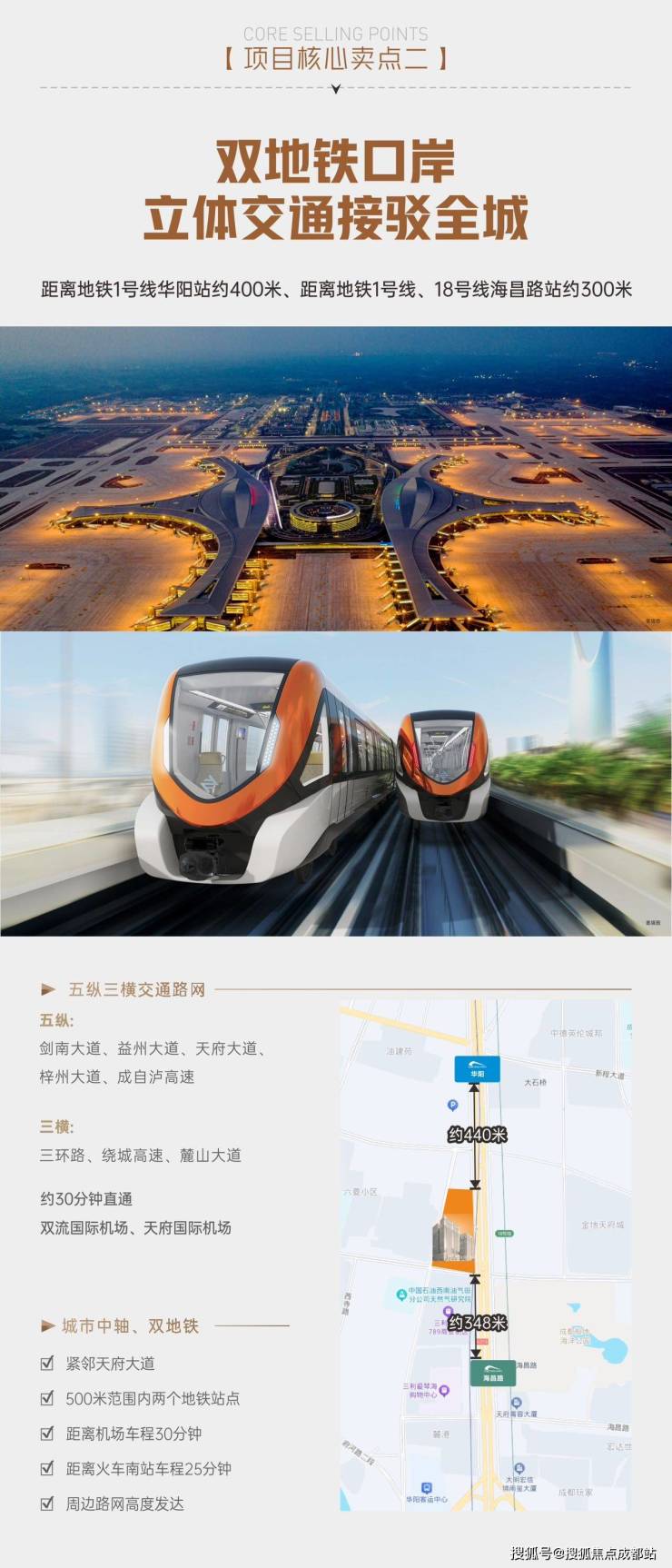 2. 黄金交通枢纽:双地铁(1/18号线)直达,五纵四横路网贯通金融城、新川科技园、中央商务区三大核心区