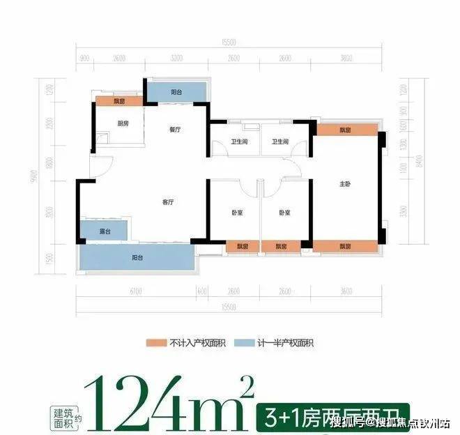 主卧双飘窗+次卧等面宽飘窗,全赠送高拓空间