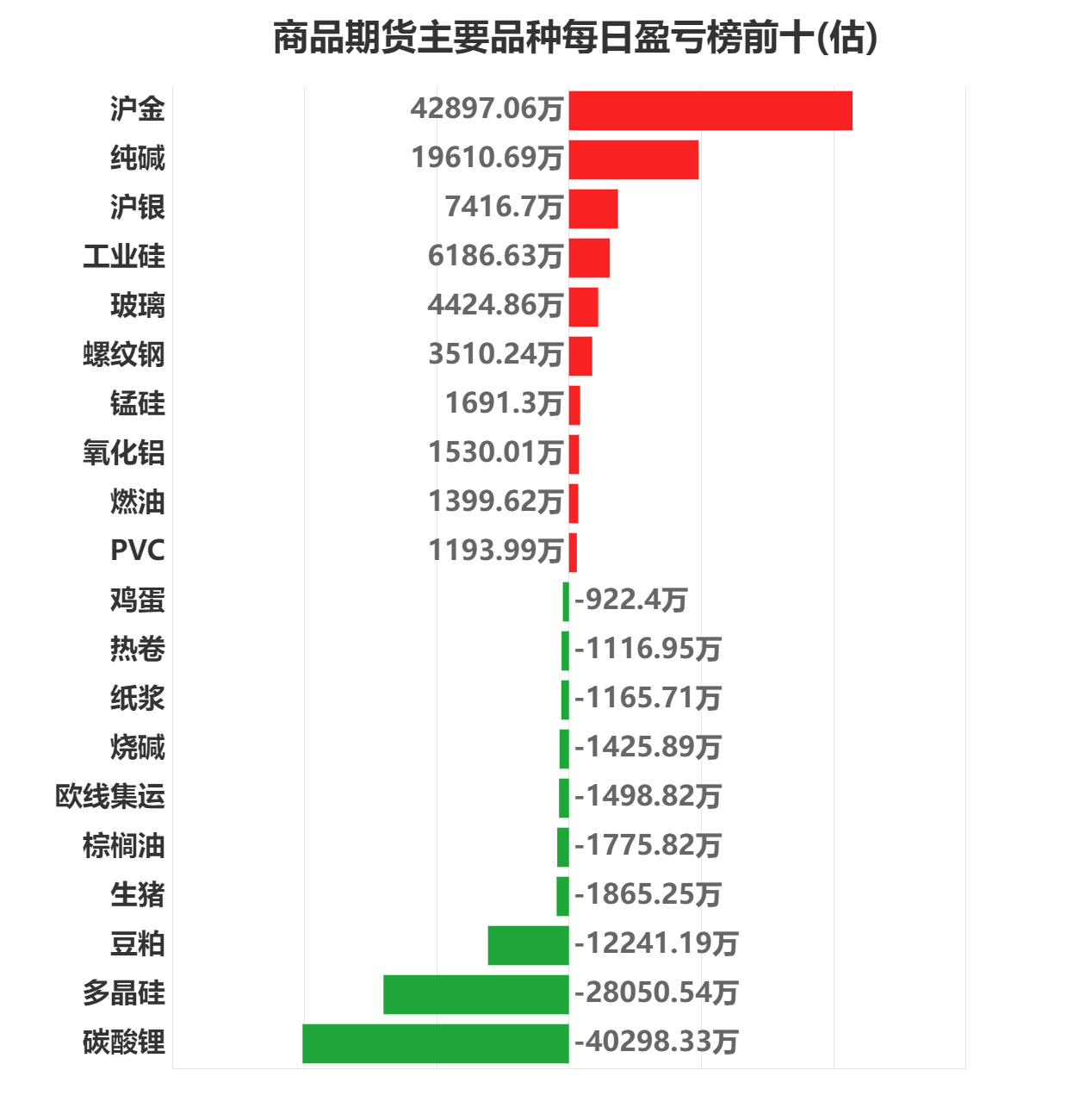 今日商品期货上榜机构席位中沪金盈利第一,为42897.06万元。