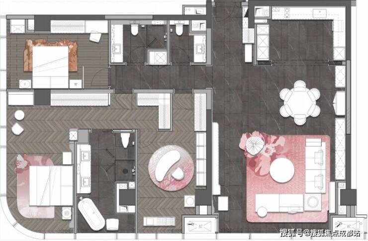 奢阔尺度:建面163㎡实得285㎡,78㎡餐客厅+68㎡主卧套房,动静分区对标纽约ONE57;