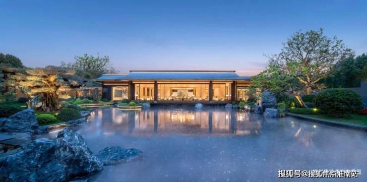 匠心设计的镜面水景与外部河道形成生态呼应,以「水映天光」的美学形态强化景观纵深感。水面涟漪不仅柔化建筑边界,更通过光影变幻增添空间灵动感,营造「静水流深」的治愈氛围,成为居者舒缓身心的心灵栖居之所。