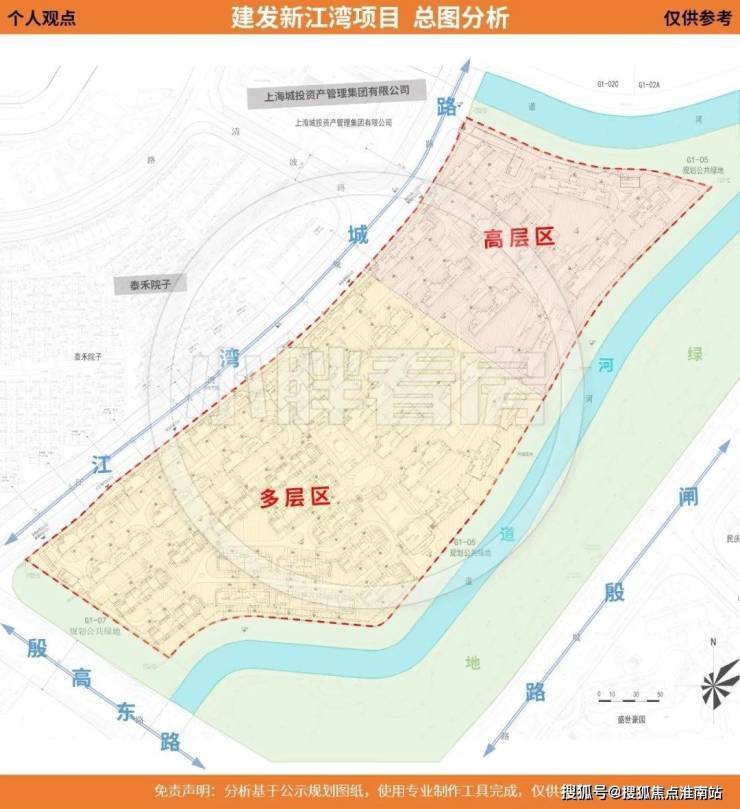 地块整体限高 40 米,实则以规划虚线为界形成差异化管控:北侧区域限高 40 米(对应不超过 13 层建筑),南侧大部分区域限高 20 米,形成北高南低的天然地势落差。