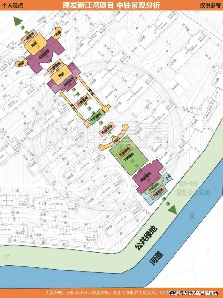 · 北侧小高层组团:采用自西向东楼层数梯度布局,沿河头排楼栋规划约 200㎡改善型户型,以 IMAX 级视野占据景观 C 位;后排楼栋则排布中小户型,形成「景观 – 户型」的层级化配置。
