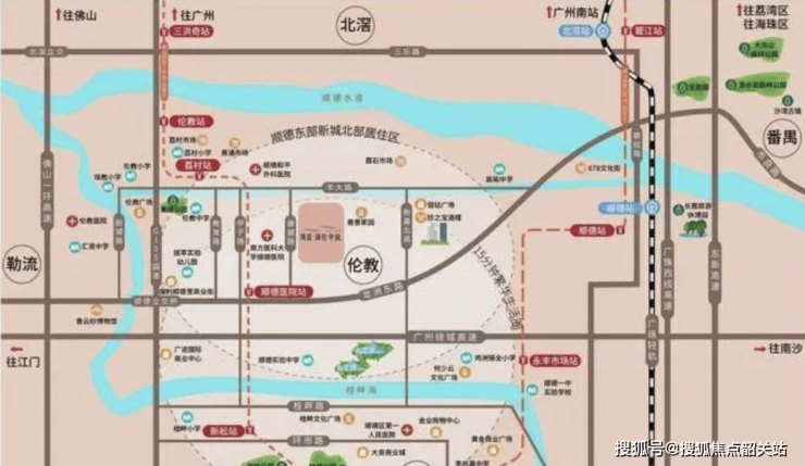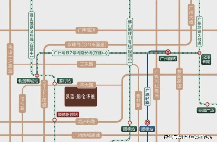 凯蓝锦伦华庭地处顺德东部新城核心位置,坐享广佛两市联动优势。项目距离地铁站步行仅数百米,紧邻广佛地铁三号线顺德医院站,实现便捷轨道交通接驳。未来广佛地铁十一号线和广州地铁七号线的交汇将进一步提升区域交通网络的密度和效率,助力打造广佛同城一小时生活圈。项目周边广佛环线、高速公路多条,驾车可快速通达白云机场及大湾区其他主要城市。便捷的交通布局不仅极大提升居民通勤效率,也为项目的价值提升提供坚实支撑,是连接佛山与广州两大城市生活和经济资源的关键节点。