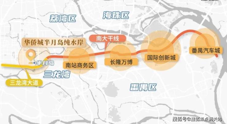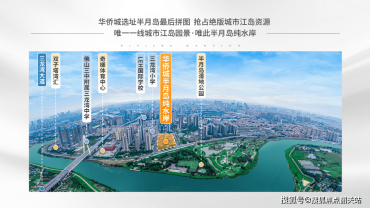 项目占据三龙湾核心发展区域地理位置优越紧邻约四百亩的半月岛湿地公园享有稀缺生态资源周边交通网络发达立体多维项目临近佛山二号线登州站距离约一点五公里可直达广州南站距离在建中的佛山三号线湾华站约三公里快速通达禅南顺中心区域道路交通方面项目处于季华路绿景路等城市主干道交汇区域驾车出行便利可快速抵达禅桂各主要功能区同时项目周边还临近广州南大干线可便捷通达广州番禺万博CBD等核心区域形成广佛同城便捷生活圈区位价值突出具备长期发展潜力项目所处三龙湾片区是佛山重点发展的高端创新集聚区汇集大量高净值人群形成纯粹的圈层氛围周边商业配套成熟岭南天地保利水城等大型商业体分布四周满足高端购物消费需求同时临近市政府医疗机构等城市核心资源享受全方位优质城市配套