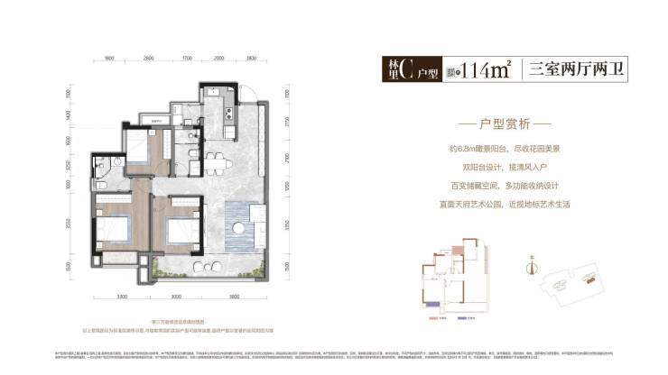 餐客厅一体化,连接约7米瞰景阳台(部分房源可眺天府艺术公园)。