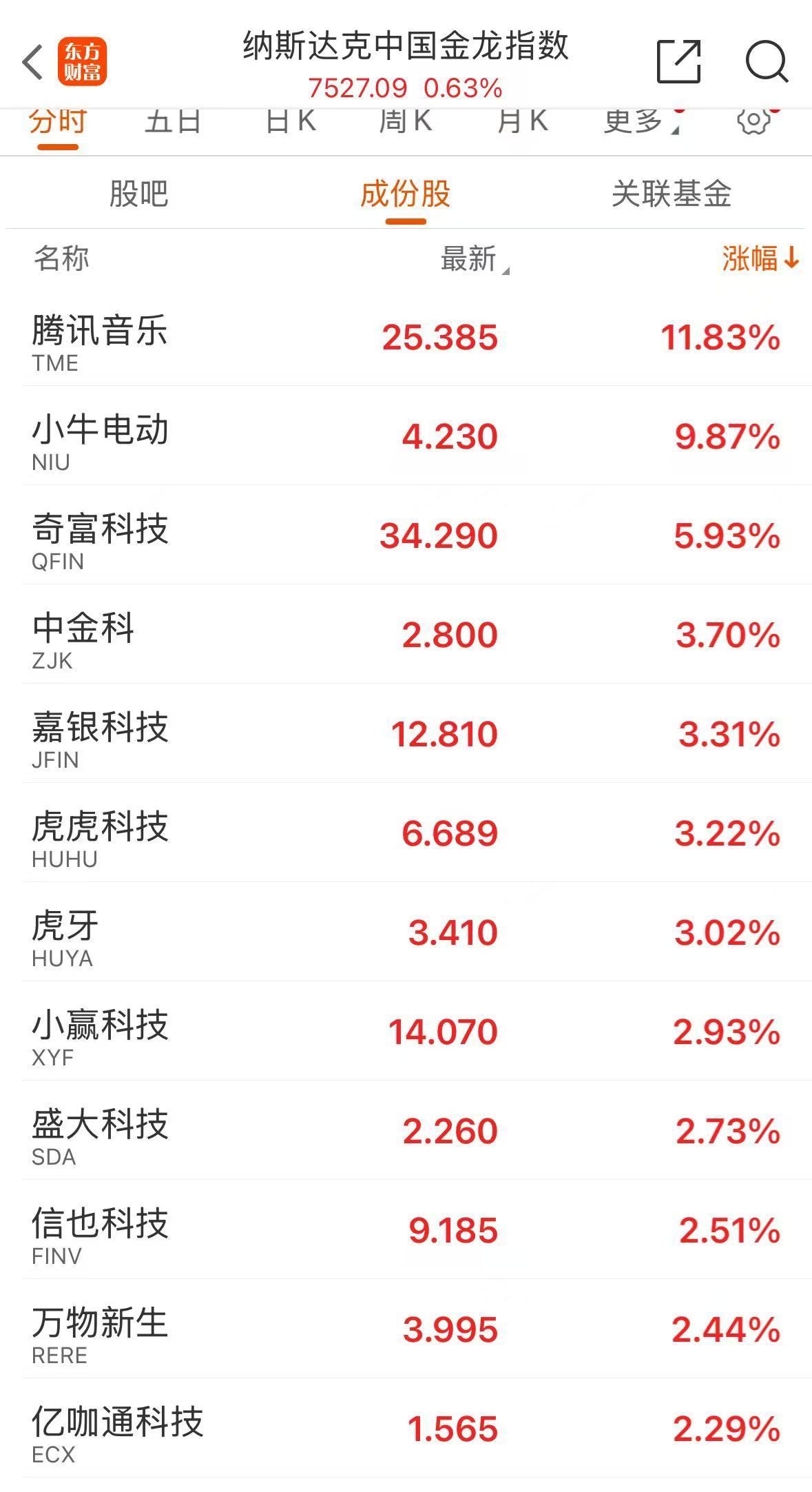 中概股也多数上涨。截至发稿,纳斯达克中国金龙指数涨幅为0.44%。