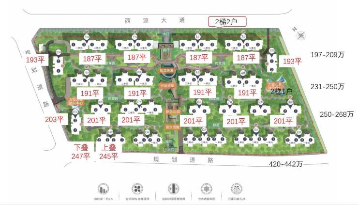 产品:建面187-247㎡清水现房,洋房1.5万/㎡起,叠拼总价400万级