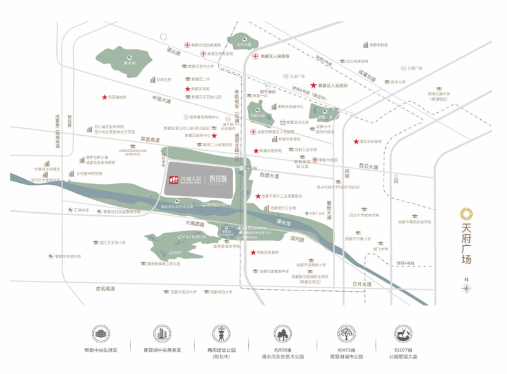坐标:郫都菁蓉湖CBD核芯,距清水河艺术公园300米,爱思瑟国际学校800米