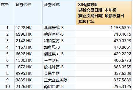 在今年的港股市场中,类似中慧生物表现的医药生物类公司并不少。数据显示,2025年以来,有49家医药生物公司涨幅超过100%,在涨幅前10名的公司中,股价均翻了数倍,北海康成的涨幅更是高达1155%。