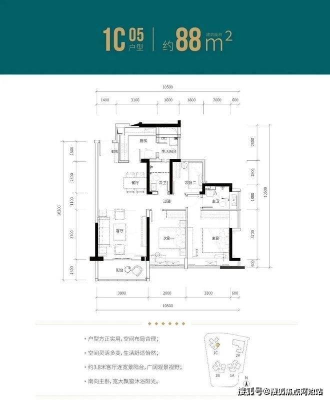 建面约82-89㎡ 舒居准现房,户型格局方正,约3.6-3.8米开阔客厅,使用率极高。