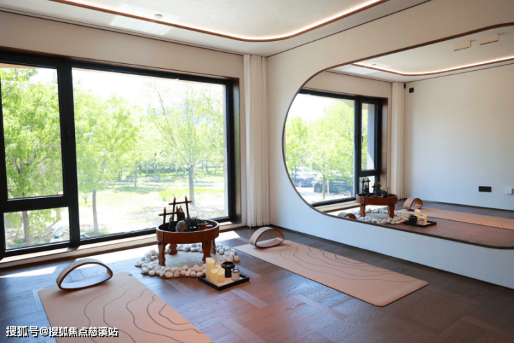地下空间利用5.6米挑空层高,营造休闲会客厅、棋牌室等圈层社交场域。叠加独立家政间、瑜伽室,实现垂直空间的高效利用,形成动静分明的立体生活场景。与此同时,负二层直面开阔院子景观,以通透视野拥抱自然生机,私享静谧与繁华的平衡。阳光下沉庭院,引入天光,与首层的露台形成立体院落生活。