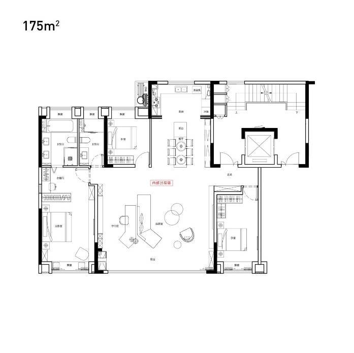 低密度多层户型的特点在于奢阔的横厅设计,动静分离,保障生活的私密性。175㎡的户型可能规划为三房两厅两卫或更为宽敞的布局,能够满足业主的多元化生活需求,如家庭影院、健身房等个性化空间设置。