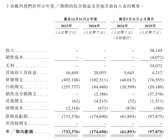 招股书显示,银诺医药的商业化才刚刚起步,2025年开始取得收入,但目前依然处于亏损状态。今年前5个月,公司收入约3814万元,亏损近1亿元。