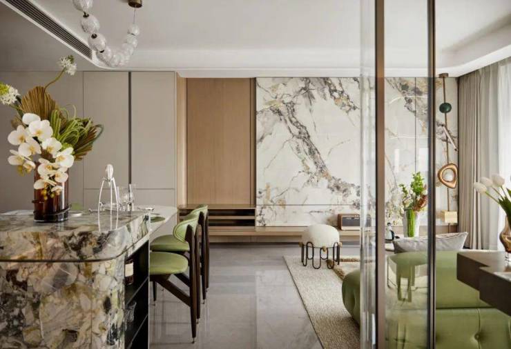另外项目客厅背景墙不惜成本的采用岩板交付,质感更强颜值更高。☑️☑️中建山水雅境售楼处电话:400-1183-605☑️☑️