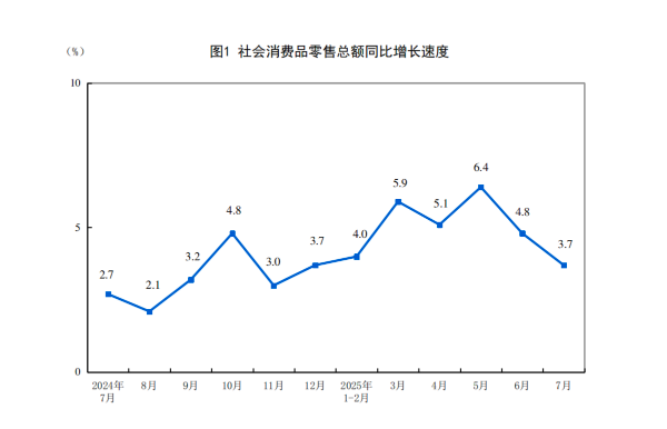 付凌晖表示,总的来看,7月份商品市场销售增速有所放缓,服务零售保持总体稳定。在提振消费专项行动带动下,消费扩大态势没有改变,消费新动能持续壮大。但也要看到外部不稳定不确定因素增多,国内居民消费能力和信心仍待提升,消费内生动力仍待增强。下阶段,要继续深入实施提振消费专项行动,在扩大商品消费的同时,培育服务消费新增长点,持续完善消费环境,促进消费市场稳定发展。