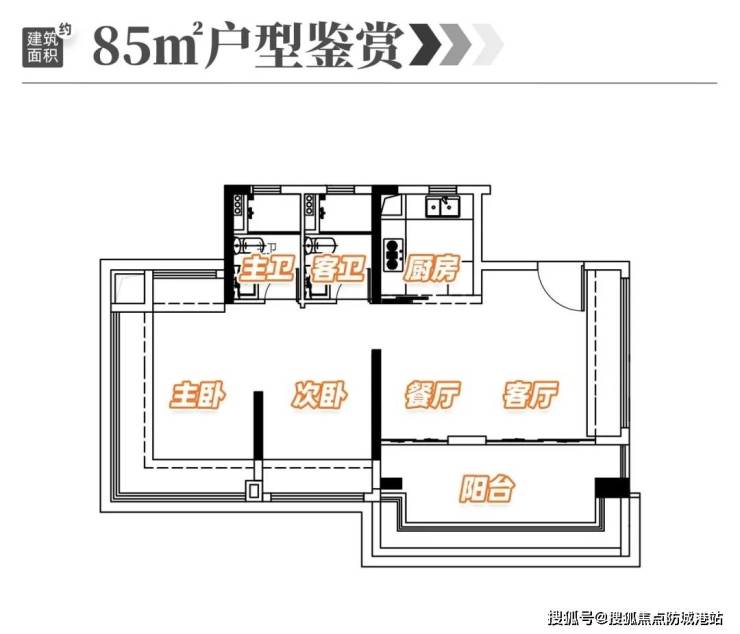 72㎡三房:总价298万起,南北通透,主卧套房设计,得房率超85%;