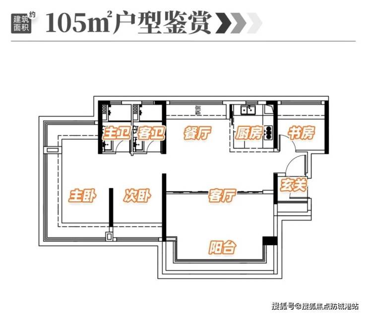 105㎡四房两卫:横厅布局,7米阳台连通次卧,景观视野无遮挡;