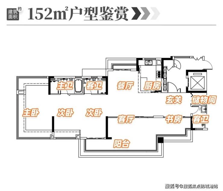 153㎡五房三卫:双主卧设计,独立电梯入户,私密性极佳,阳台面宽9米。
