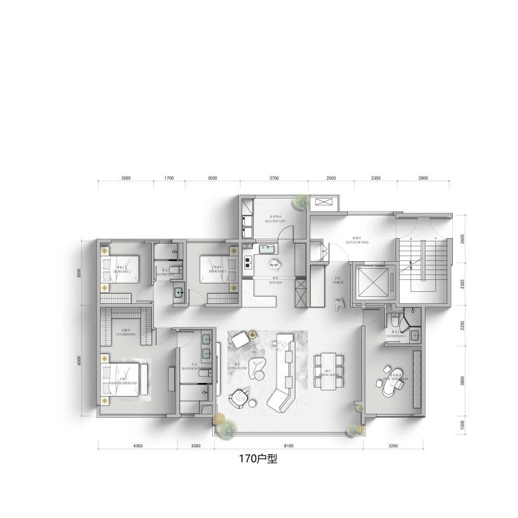 高低错落地排布于静谧的园林中,多一方阳台设计使南北皆享四季景观趣味;超大面宽的方 / 横厅设计与LDKG一体化设计,让室内外空间更通透,家庭成员互动更密切,营造出温馨的家庭氛围。