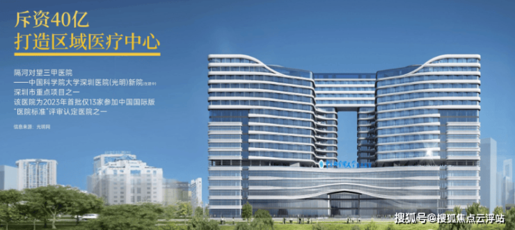 04医疗配套 “中国科学院大学深圳医院(光明)新院”,政府 投资 40 亿打造的三甲医院 ,未来将打造成区域医疗中心,是深圳市重点项目之一,预计 2025 年建成并投入使用。项目用地面积约 5 万平方米,总建筑面积为33.7 万平方米,可提供床位 1500 个,将有效缓解群众看病难的问题。