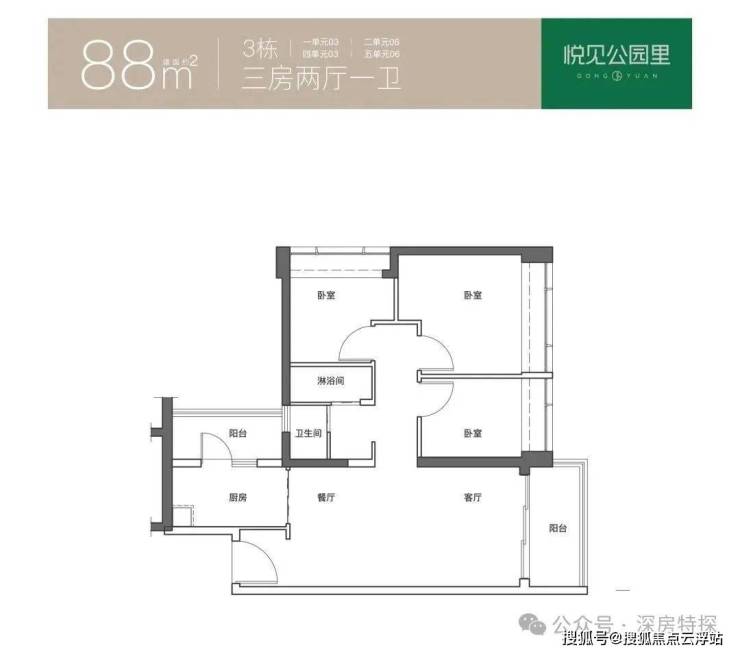 2. 得房率低 部分户型的得房率较低,如88㎡的三房一卫,实际使用面积较小,可能会让购房者感到遗憾