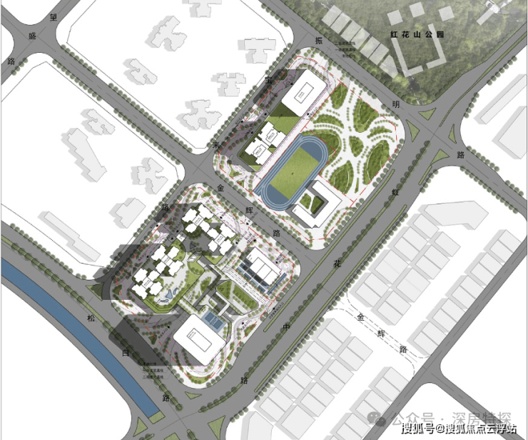 05休闲配套项目约2公里范围内,近享红花山体育中心、光明图书馆红花山分馆、文化馆等城市人文配套。外侧北邻约27万方红花山公园, 内侧遵循自然之理,与公园绿地共生,目光所及之处,是公园的四季更迭。