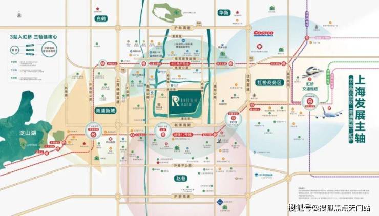 轨交17号线:项目距赵巷地铁站约2.3km,6站直达大虹桥交通枢纽