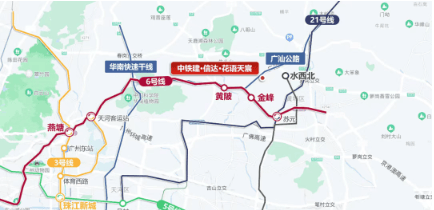 地铁接驳:虽距离地铁 6 号线黄陂站约 2.5 公里,步行不便,但门口有公交 / 楼巴接驳,也可骑行小电驴,骑车约 8 分钟。对于在科学城、智慧城上班且依赖地铁通勤的居民,时间可控制在一小时内。例如,从班岭公交站去往地铁 21 号线苏元站,再到智慧城,约 57 分钟;去科学城坐公交直达,约 40 分钟。