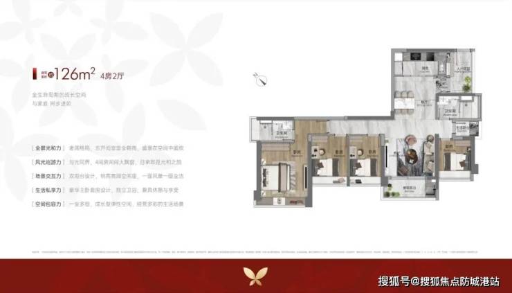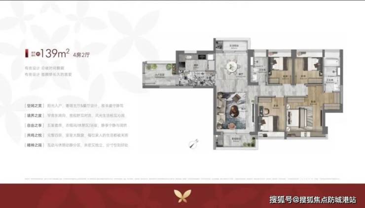 143㎡四房:双主卧+全景落地窗,满足三代同堂需求;