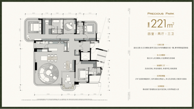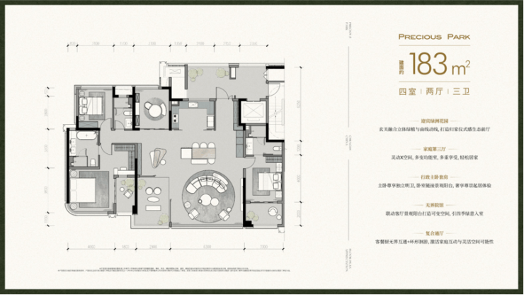 全系建面约183㎡以上,全户型可改造为五房,适配多代同堂或社交需求。