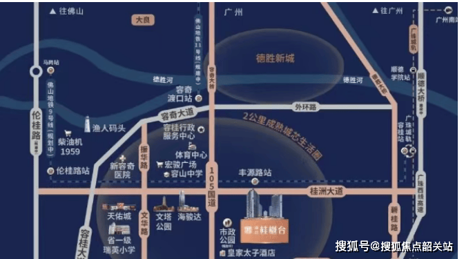 顺控桂樾台地处容桂母城的心脏位置,是容桂城区内难得的优质地块。这里不仅是容桂经济发展的引擎之一,也是城市化进程的重要组成部分。项目周边交通网络发达,无论是市内还是市际出行都非常便利。它不仅紧邻顺德大道南(G105国道)和桂洲大道,距离大良和容桂其他区域仅需10分钟车程,而且通过一城轨、三高速、三地铁的综合交通体系,实现了广佛同城的无缝对接。