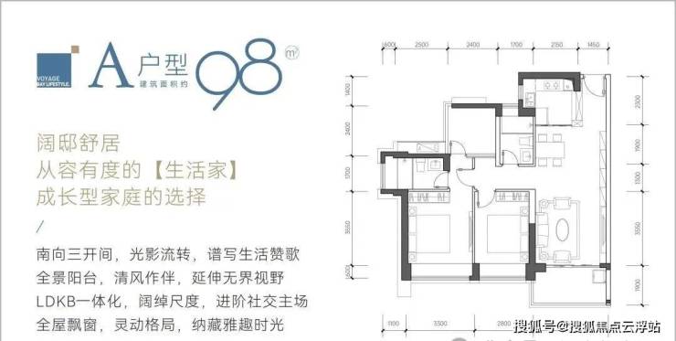 98㎡的3房2厅2卫,设计的是经典竖厅格局,LDKB一体化设计,客厅3.6米开间,三开间朝南,3个卧室分别做到了主卧13.69㎡/次卧11.62㎡/次卧5.76㎡(包含墙体飘窗),得房率约:89%(包含赠送),西南、东南或正南朝向。
