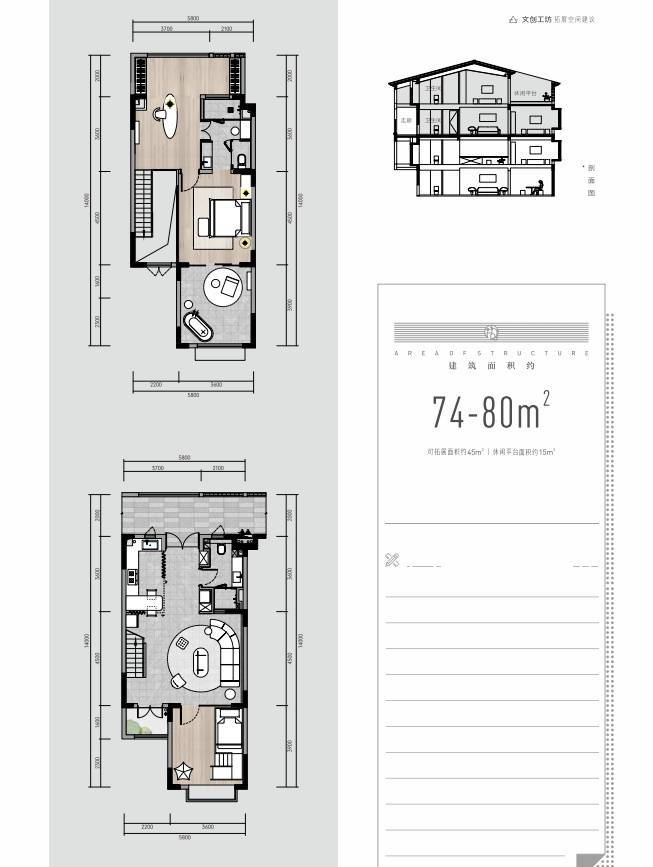 建筑面积约79㎡,实际使用面积约158㎡和花园面积约41㎡