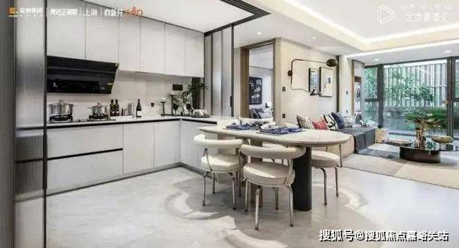 金地嘉峯汇售楼处电话 4008569058☑️☑️厨房移门采用大板砖厨房墙体、硅酸钙板厨房吊顶,定制金属移门+瓦楞玻璃,可根据需求自行开合,不仅引入更多光线,更增强了互动性!