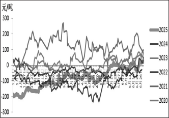 2025年4月17日,玉米2507合约基差为-88元/吨,盘面价格高于标准交割品现货价格。根据基差季节性变化规律,玉米2507合约基差预期走扩,这有利于卖出套保。