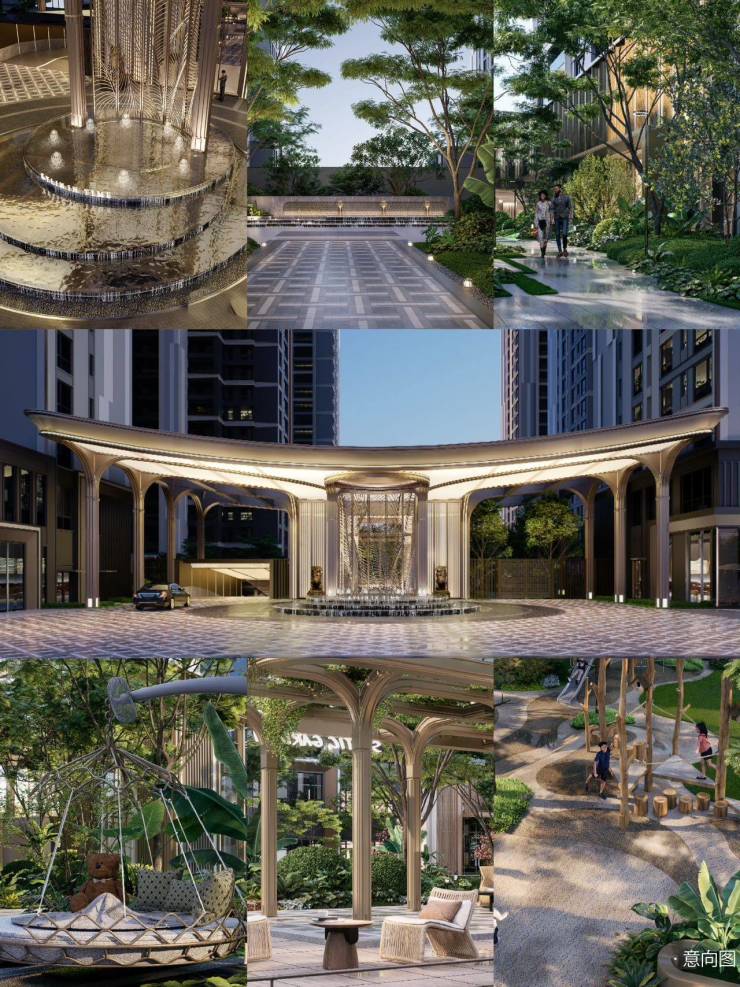 阔规划——通过“一轴两带,一心六点”的规划布局,实现了楼间距的最大化,确保每户都能享受到充足的阳光与视野;同时,也充分利用每一寸土地,精心打造每一处景观,让社区的每一个角落都充满诗意与画意;在社区园林的打造上,考虑到居者对自然生态的需求,将水与景融合,依次可见的是景观水体、会客厅廊架、林荫平台,配置了大量的绿色植物,让业主身处绿意盎然之中,让业主在繁华都市中也能私享户外绿意景致