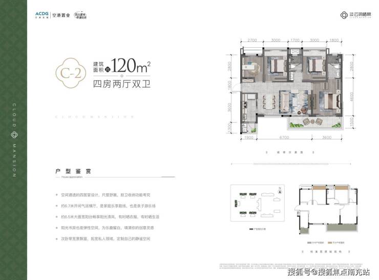 1.户型优势:南北通透户型,南北向风景各异;南面朝超大中庭景观,拥有无敌视野。