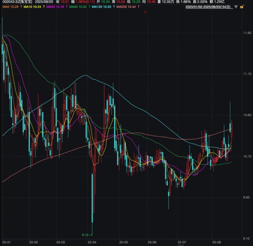 从股价表现来看,兔宝宝年初至今下跌约8.8%。