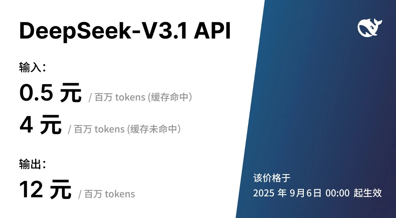 DeepSeek发布新模型V3.1 价格涨了但Agent能力提升了