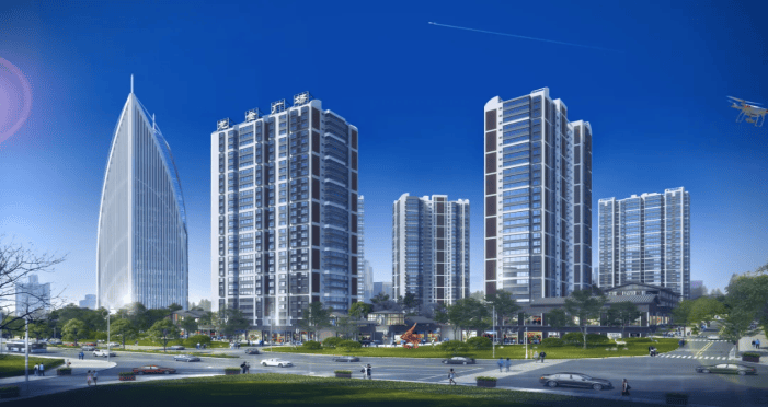 建筑栋数: 5栋住宅,1栋写字楼,1个智慧农超 ,3栋商业及临街商铺(分两期开发)