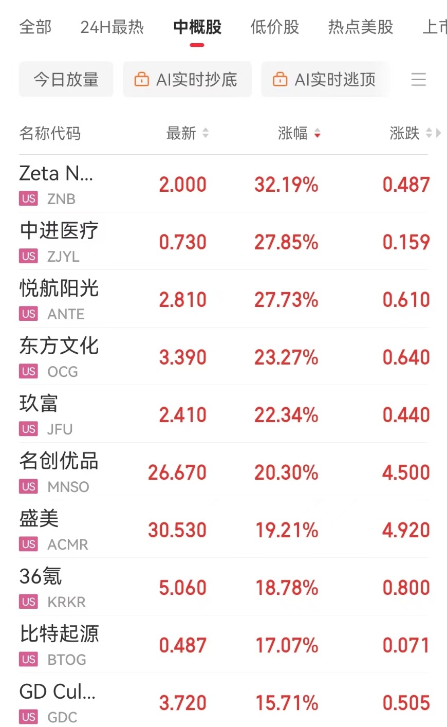 名创优品涨逾20%,蔚来涨超14%,向上融科涨逾13%,金山云涨逾9%,阿里巴巴、爱奇艺、小鹏汽车涨超4%,京东、百度、理想汽车涨逾2%。